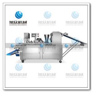 旭眾XZ-290AS型卷面式包子饅頭機是一款以壓面方式成型面皮,卷面方式包餡,仿手工捏花的一款機型,它整合了原有的二道壓面、成型機、出餡機、切刀為一體,有操作方便、占地面積小等優點。該機采用壓面成型面皮的方式,表面光潔,不傷面筋,不發熱,使產品口感滑順爽口,保持傳統手工工藝的風味,本機采用自動控制系統,品質穩定,壓面滾筒采用性能好的食品級材料UPE加工而成,且加大了滾筒直徑使得在壓面過程中面皮及重量的精度,規格,長度,大小,面皮的厚度皆可調整設定。