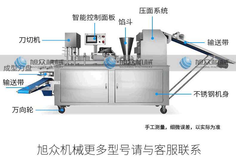 ◆壓面、成型、出餡、切刀一體化,操作方便,生產效率高,占地面積小。