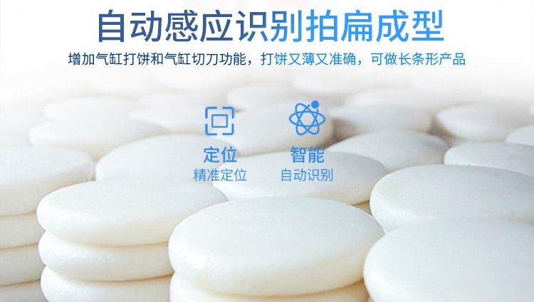 ?增設(shè)氣缸打餅功能和氣缸切刀功能,打餅薄又準(zhǔn)確,可做長(zhǎng)條形產(chǎn)品;
