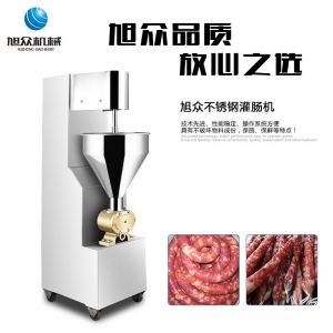 旭眾牌SZ-200灌腸機使用敞開式不銹鋼料斗,適用于連續添加物料;與灌裝手接觸部件全部采用優質不銹鋼制作以防生銹;該機自動化程度高,技術先進、性能穩定、操作簡便、工作效率高,具有不破壞物料成份,保質、保鮮等特點。