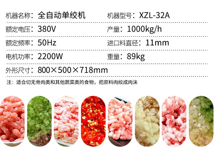 XZL-32A單絞機吸取同行之優(yōu)點,改進新型絞肉切肉機械,它能切豬肉、羊肉、牛肉、魚及其它各種肉類、所切肉片厚度適中切片效率高,是餐廳、賓館、酒樓、單位食堂等絞肉切肉的理想機械,該機外形獨特,操作方便,維修簡單,工作效率高,在同行業(yè)中處領先地位,與食物接觸部分均采用不銹鋼制造符合食品衛(wèi)生標準。