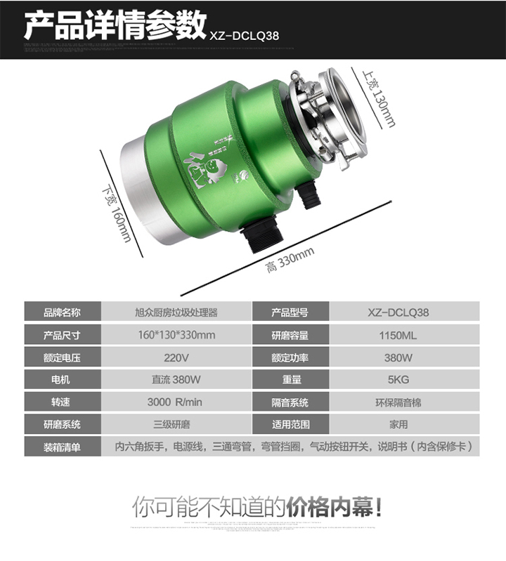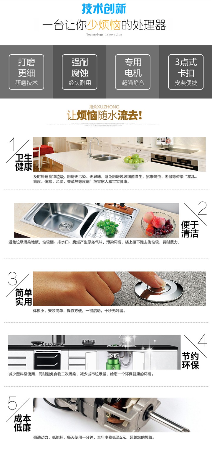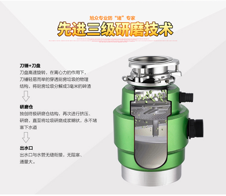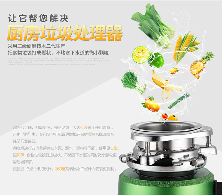 DCLQ38-廚房垃圾處理器,該機(jī)擁有獨(dú)特的粉碎功能,使所有垃圾研磨吸毒真正低于3毫米,用戶不用為管道堵塞而煩惱,粉碎后粗、細(xì)兩種垃圾通過濾孔自動(dòng)分離,成漿狀的細(xì)垃圾隨水流流入管道,粗的垃圾會稍停留在研磨倉繼續(xù)粉碎,形成粉末狀后,再隨水流流入管道,客戶可以放心使用。