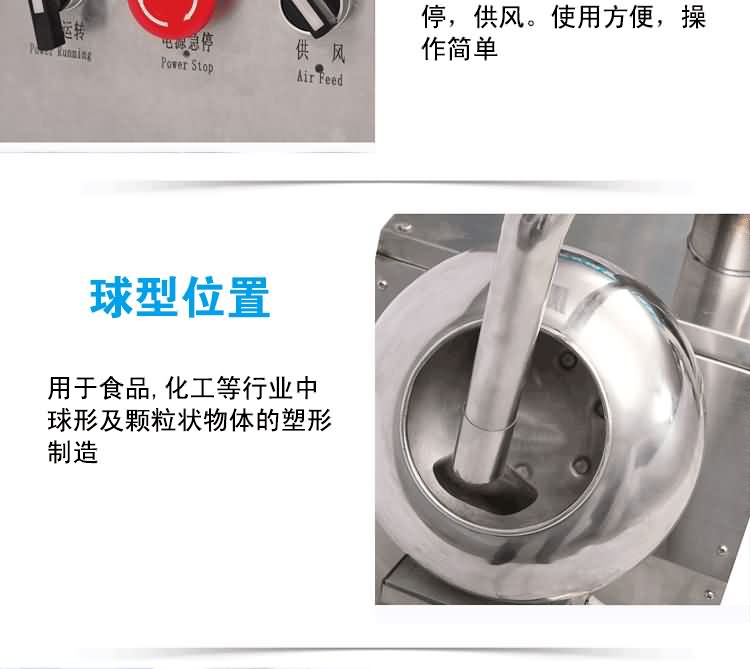 本機主要用于制藥行業(yè)藥品包衣,打光,制粒,也可用于食品,化工等行業(yè)中球形及顆粒狀物體的塑形制造。