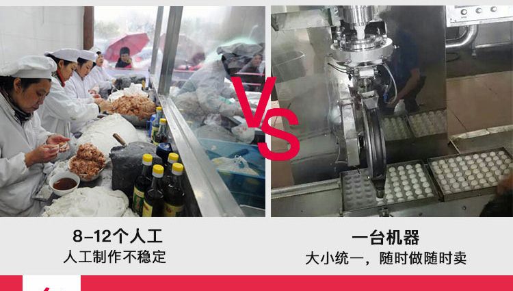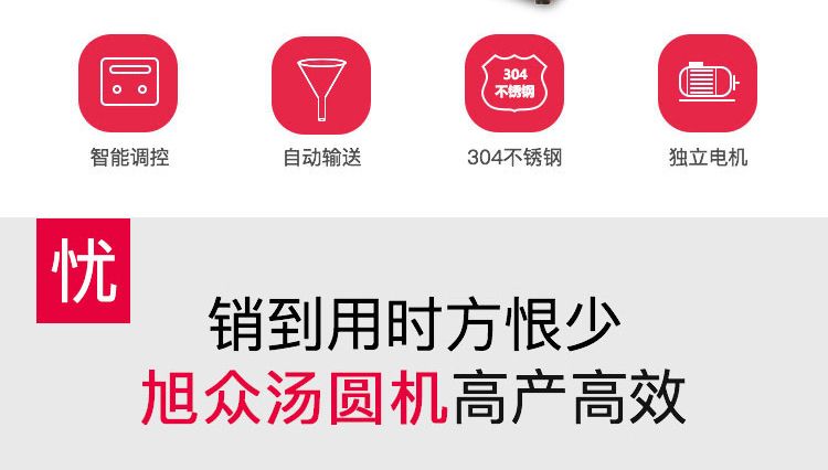 旭眾牌VFD-4000A型全自動(dòng)湯圓成型機(jī)是一款依外皮及餡料的各類(lèi)不同,可制作湯圓、豆沙包、南瓜餅、奶黃包、含餡饅頭、玉兔包等包餡食品。功能齊全,適用性廣,自動(dòng)化程度高,定量準(zhǔn)確,操作簡(jiǎn)單,只要將面團(tuán)與餡料放入進(jìn)料口,開(kāi)機(jī)便可自動(dòng)搓圓、成型,制品不易變形。