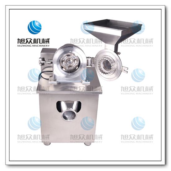 粉碎機系采用304號不銹鋼制作,配套國標(biāo)電機,主要用于化工材料、中藥材含樹根、樹枝以及塊狀類物料、各種含油量不高的糧食、五谷雜糧以及其他一些硬性、脆性的物料。本機利用活動齒盤和固定齒盤間的相對高速運轉(zhuǎn),使被粉碎物經(jīng)齒盤沖擊、摩擦及物料彼此間碰撞而獲得粉碎。粉碎物可直接從磨腔中排出,經(jīng)出料口出來,一般的物料經(jīng)過粉碎后要經(jīng)過棉布袋來收集,粉碎后的物料收集在袋內(nèi),空氣則從布袋的細(xì)小孔眼出來,不會將細(xì)粉排出,從而起到不浪費,不污染的效果。粒度大小由更換不同目數(shù)的篩網(wǎng)決定。本機結(jié)構(gòu)簡潔、堅固,運轉(zhuǎn)平穩(wěn),粉碎物料快速、均勻,效果良好。本機全為不銹鋼材料制作,機殼內(nèi)部(粉碎槽)所有齒槽經(jīng)精密機加工從而達(dá)到表面平滑,易于清理,改變了普通粉碎機內(nèi)壁粗糙、易積粉、難清理的現(xiàn)象,使食品、藥品、化工等生產(chǎn)更能符合標(biāo)準(zhǔn),達(dá)到GMP的衛(wèi)生要求。