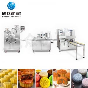 五. 月餅自動包餡機與月餅自動成型機、月餅自動排盤機組合成一條月餅自動生產(chǎn)線,自動化程度高.提高生產(chǎn)效率。
